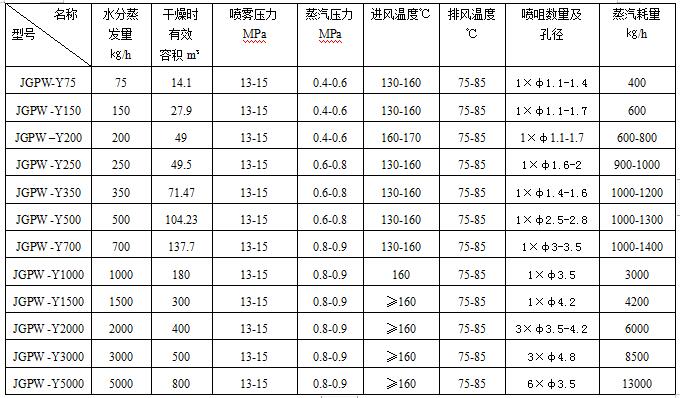 壓力噴霧干燥塔JGPW-Y型壓力噴霧干燥機組主要技術(shù)參數(shù)…